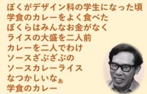 学生時代のやなせたかしさんはお金がなくて、学食のライス大盛の二人前のカレーを、2人で分けて食べていたそうですよ。カレーパンマンの思い入れが感じられると思います。